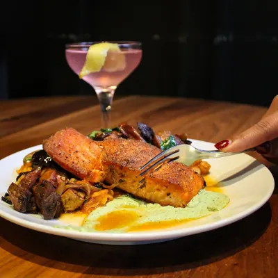 "Dig into grilled and seared fish, great burgers, and snacky items with global flourishes at this dark-wood and leather-dressed restaurant." Full review