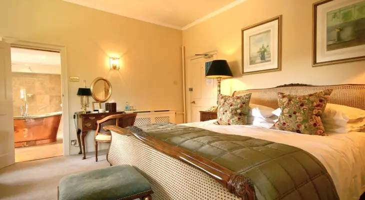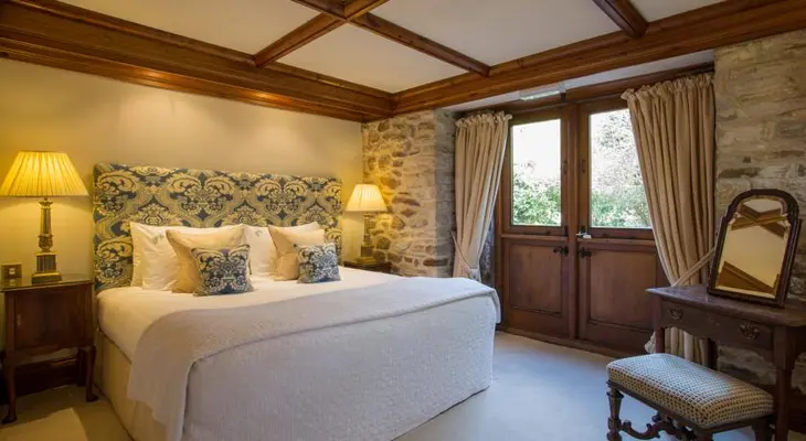 "Four acres of English cottage gardens on the banks of the River Frome surround this former monastery, home to smart and stylish bedrooms and a glass-walled dining room, where chef Stephan Guinebault’s menus draw inspiration from his grandmother’s cooking on her Loire Valley farm"