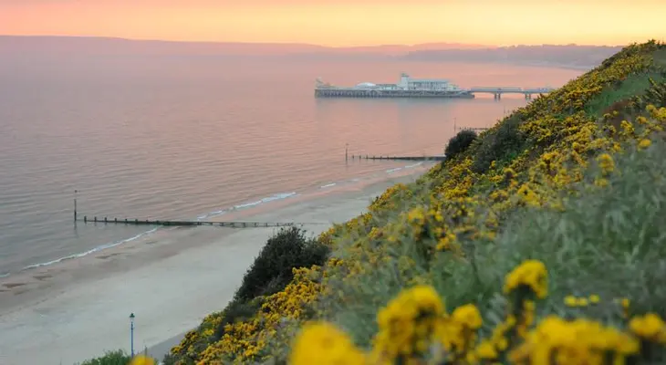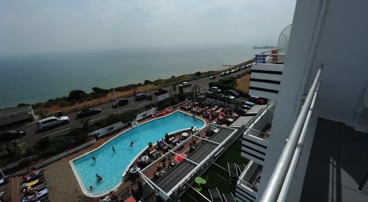 “Dashes of neon and an Art Deco edge ensure this Bournemouth clifftop hotel stands out from mundane coastal lodgings.”