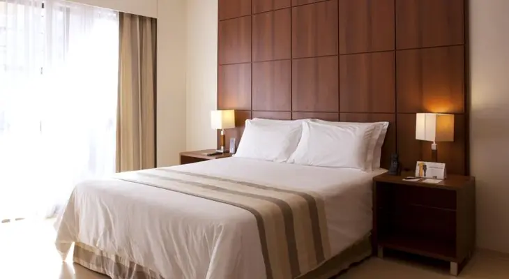 "Tall five-star whose lobby and corridors are decorated with photos from the life of Juscelino Kubitschek, with cream, beige and grey decor in the rooms."