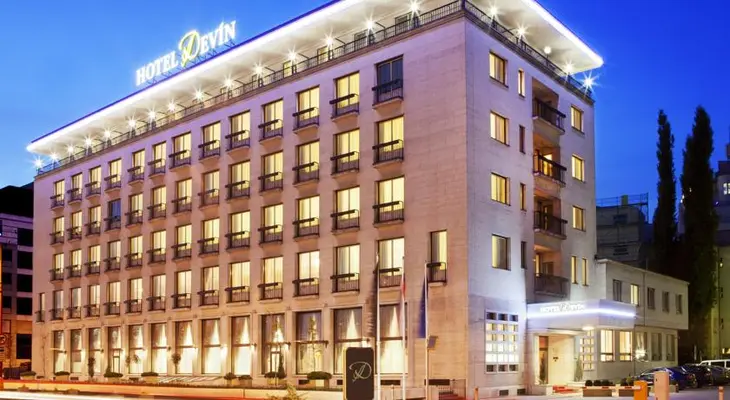“Clearly reflecting an outdated notion of overstuffed grace - tufted black leather chairs, busy wallpaper - the Devín could use a makeover.”