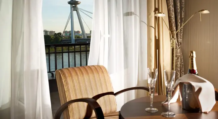 "Located in the historic centre of Bratislava, on the banks of the Danube. Comfortable rooms, with state-of-the-art facilities are furnished in natural materials and wood."