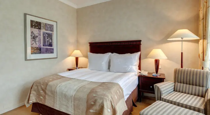 “Situated at the heart of town, close to the Slovak National Theatre, the Carlton is housed in one of the capital’s most imposing buildings, built in 1837.”
