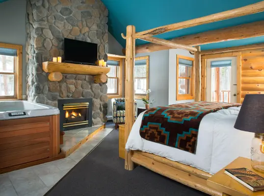 "A contemporary log lodge offering luxurious guest rooms and classic mountain hospitality."