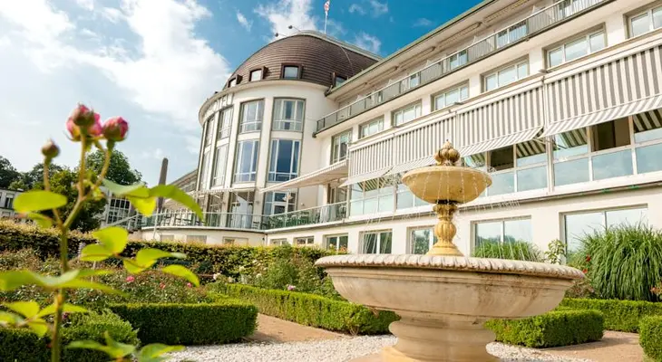 “This palatial hotel comes with an enviable location between a small lake and an extensive area of park and forest not far from the main train station.”