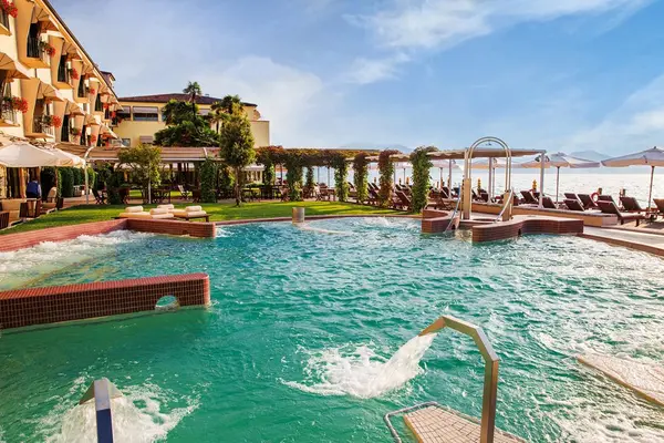 “The Grand Hotel Terme is an upscale spa-oriented property with an enviable waterfront location on Lake Garda's Sirmione peninsula.”