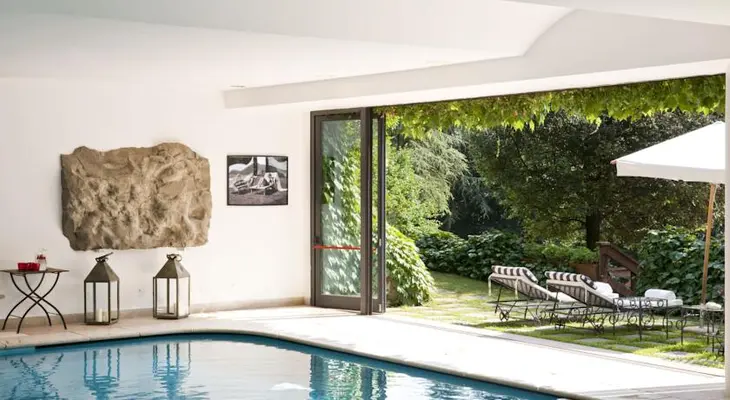 “Romantic ivy-covered villa near Milan with a world class spa, and lounge dedicated to reading and experiencing culinary pleasures.”