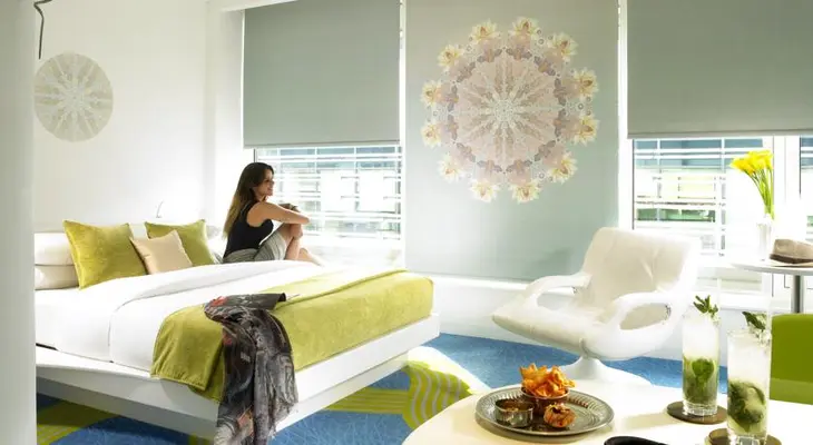 "Step inside and there’s a playful Teletubbies-chic look going on – think porthole windows, citrus colours, curvy walls and pod-shaped bathrooms. It makes for a fun stay "