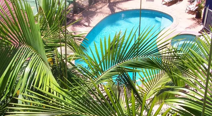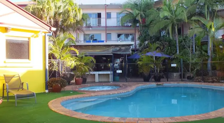 "Sociable resort-style backpackers’ near Boundary St, with free hourly shuttles into town. Facilities include a bar, smallish kitchen and pool. Dorm $25, double $120."