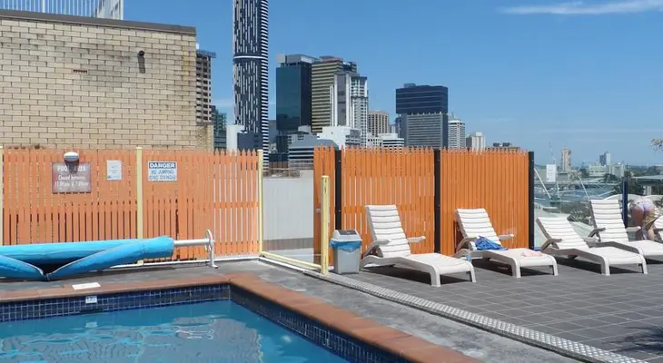 “One of Brisbane’s biggest hostels, this busy, well-run place has clean facilities, fairsized rooms, a small pool, free undercover parking and good work connections.”