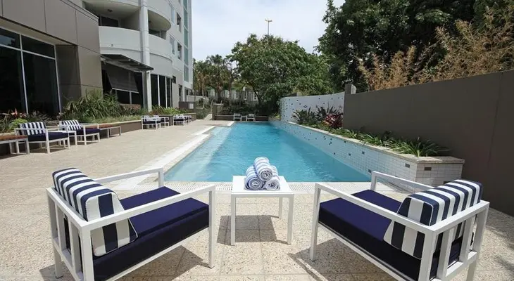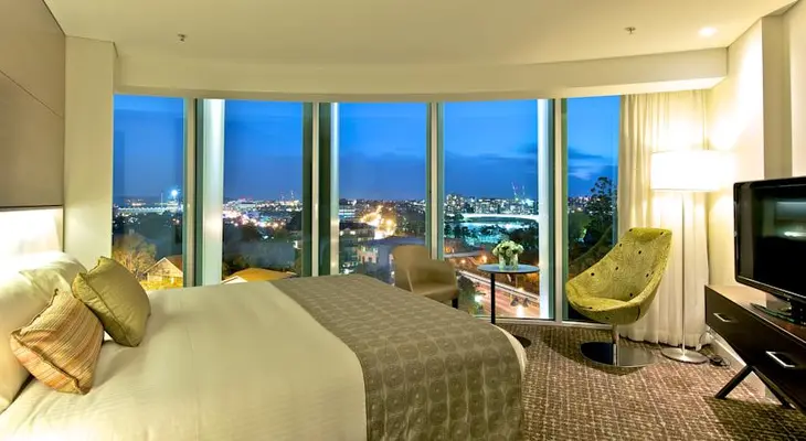 “This hotel is situated at Kangaroo Point and has stunning views over the Story Bridge and Botanical Gardens and an impressive night skyline.”