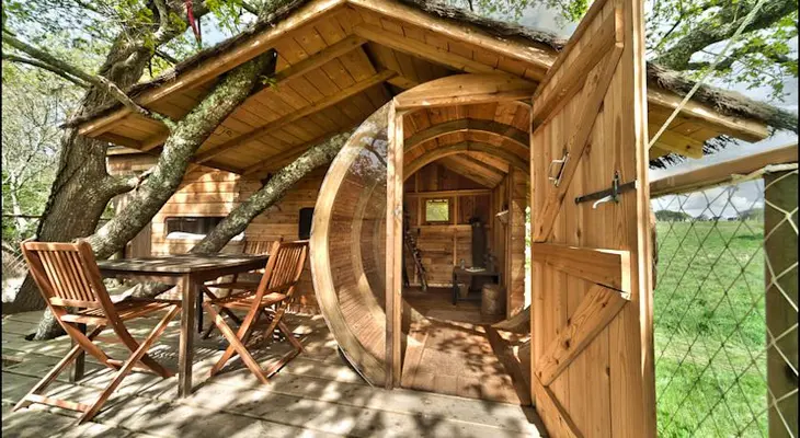 "Run by fun-loving Myriam and Arno Le Masle, a farmhouse and barn house the guest rooms, while the grounds shelter yurts, bubble tents and tree houses and even a whimsical wonkily shaped 'house'." Full review