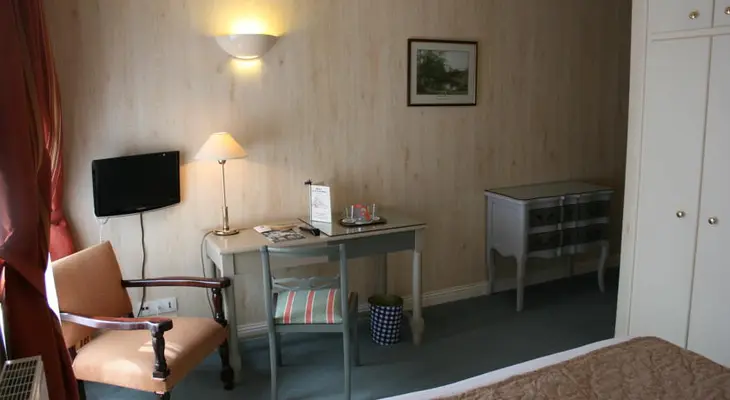 "Set on the town ramparts, with pretty sash windows, mansard roofs, and a Breton stone facade, this hotel has a sunny flower garden, which the best rooms (such as No. 19 and No. 28) overlook."