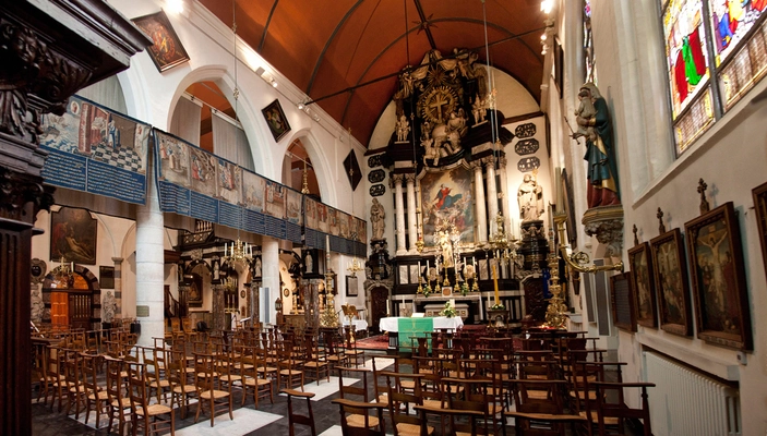 “This Gothic church dates for the most part from the 13C. It is mainly of note on account of its slender 122m-tall brick steeple. Inside are several masterpieces, including the Bruges Madonna.”