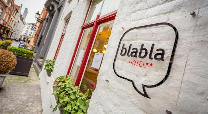 “Hotel Bla Bla is a modern but no-frills budget hotel housed in an historic Flemish building on a pleasant cobbled street in central Bruges.”