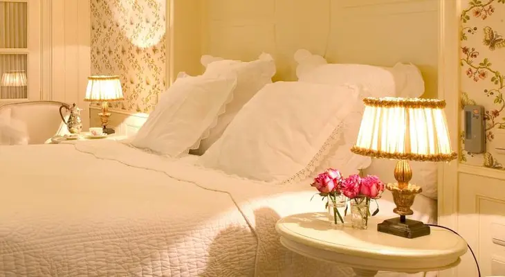 "Rooms pitch hardwood floors against soft, flowery drapes, antique furniture, tapestries, and neutral tones." Full review