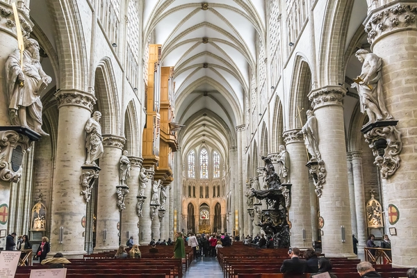 "Rising above the hectic chaos of the Lower Town on Treurenberg in a no-man’s land between the Lower and Upper Towns, this magnificent twin-towered Roman Catholic church is the “purest flowering of the Gothic style”; its choir is Belgium’s earliest Brabantine Gothic work" Full review