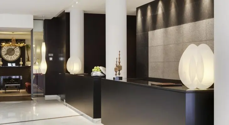 "A modern luxury hotel overlooking a busy square at the heart of the European institutions district."