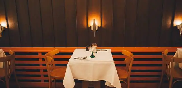 “Wood panelling, old-school green-stemmed wine glasses and paper tablecloths give Vismet a 1970s Germanic feel, but the open concept kitchen is of a more contemporary era.”