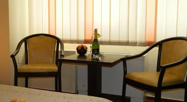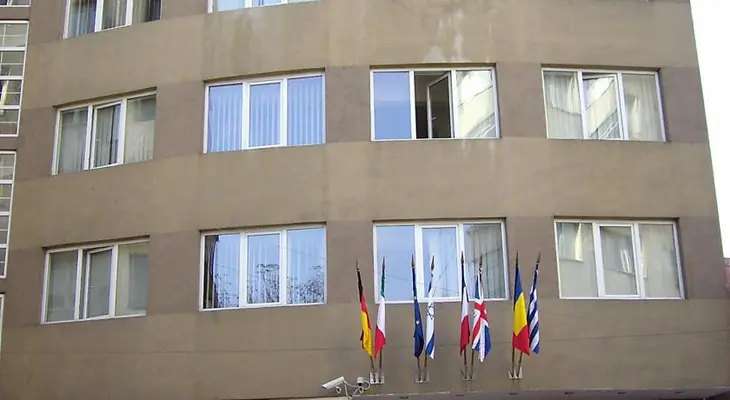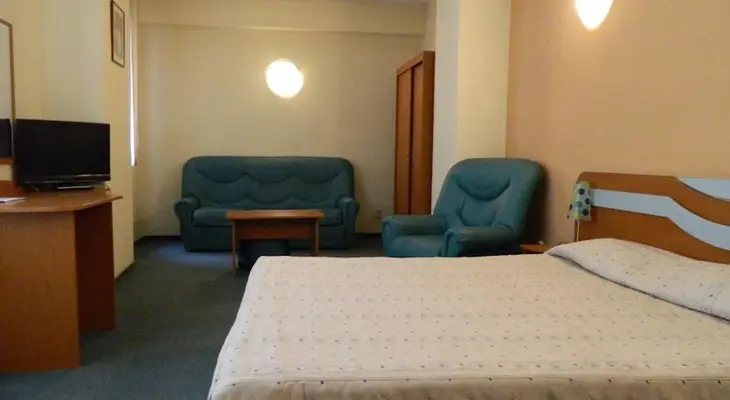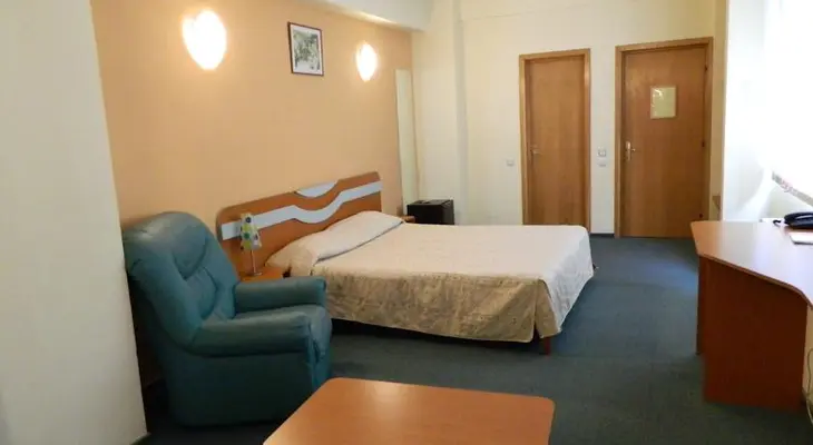“A bright and pleasant hotel, featuring spotless, mint green rooms with comfy leather sofas and a/c. Located just off B-dul Golescu, midway between Gara de Nord and Gara Basarab.”
