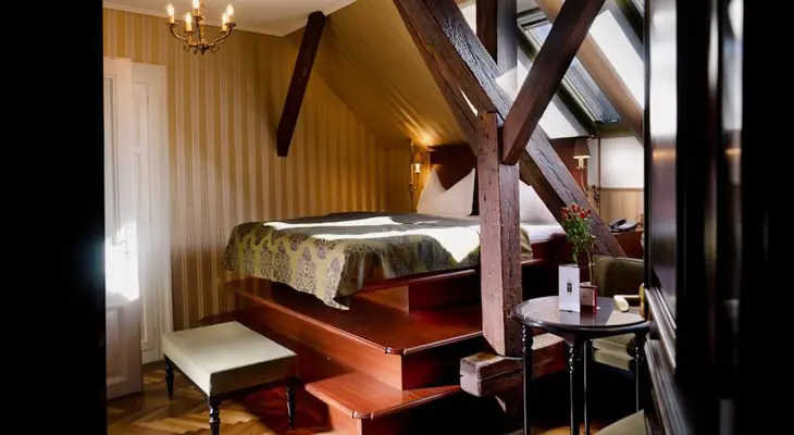 "Above the café of the same name, the fifteen elegant Gerlóczy rooms all lead off a beautiful wrought-iron spiral staircase."