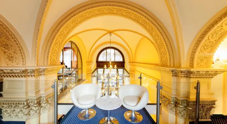 "This hotel, which stands behind the Hungarian National Museum, hence the name, occupies a former aristocratic mansion dating back to the 1890s and blends some original features with modern styling (including a glass-walled atrium)" Full review