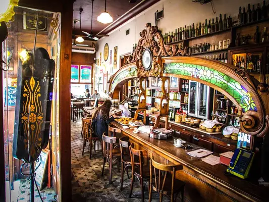 "Self-consciously traditional San Telmo café bar with wooden tables and a mind-boggling choice of sandwiches and picadas. Tango is the usual backdrop."