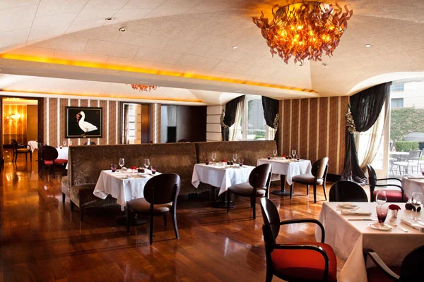 "Sample Gallic-inspired cuisine amid vaulted ceilings and sumptuous furnishings."