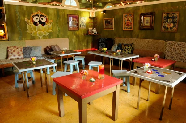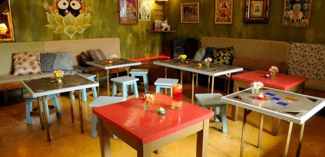 “Colorful, themed decor and low tables offer a vegetarian Indian food experience with a large dollop of hippyness.”