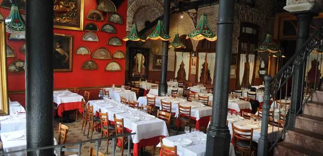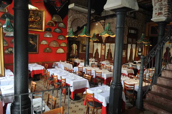 “Much-lauded Spanish cuisine in old-school atmosphere. Tile floors, cramped tables, antique lanterns to make you say olé.”