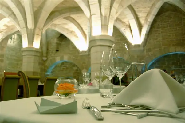 "A remarkable place! This 13C crypt captures the imagination with its vaults, its lighting and, in the middle of the dining area, an imposing grand piano." Full review