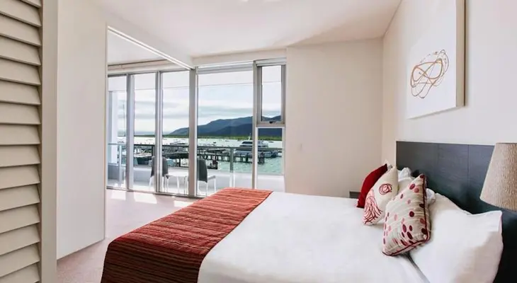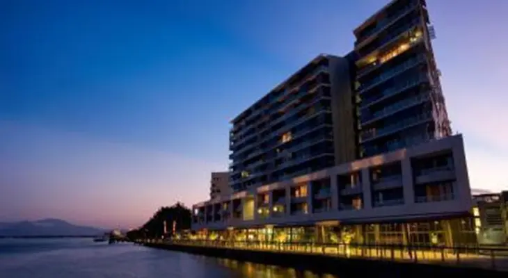 "Contemporary apartment-style hotel overlooking Cairns' marina with four waterfront restaurants." Full review
