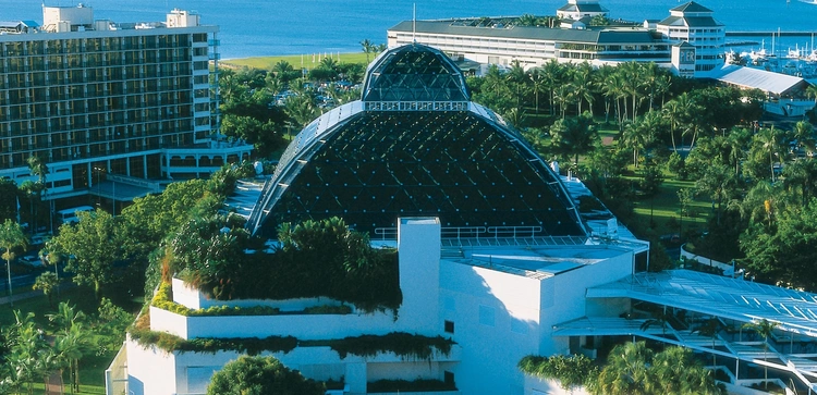 "This luxury development in Cairns includes a nightclub, rainforest conservatory, five restaurants and a casino."