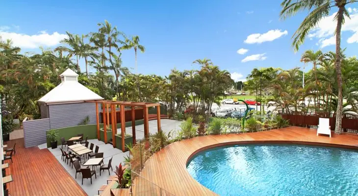 “Separated from the water by a generally quiet road, a park and a bayside promenade, this resort is a pleasant 15-minute stroll from the Night Market and the main shopping and dining area.”