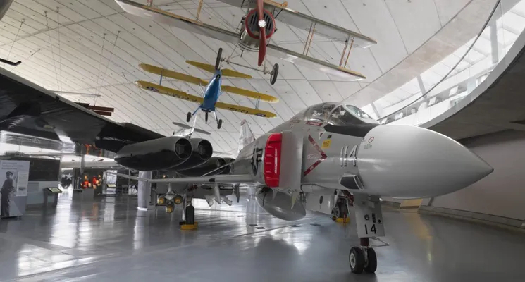 The awe-inspiring American Air Museum hangar pays homage to US WWII servicemen, hosting the largest collection of American civil and military aircraft outside the USA.