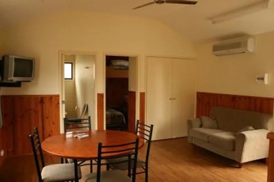 “This friendly highwayside complex is only 12km north of the centre, just over the NSW border. It has plenty of sheltered midrange accommodation and recreation facilities and is pet friendly.”