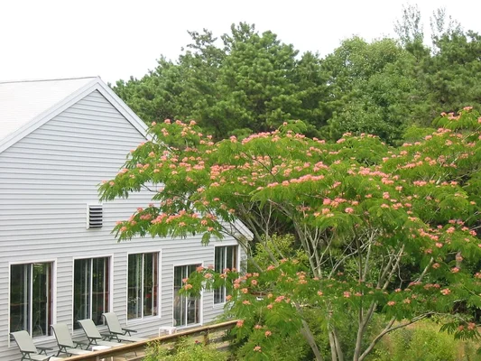 "Long a summer favorite, this motel is set back from the main road, surrounded by 5 acres of trees and lawns; it has direct access to the Cape Cod Rail Trail." Full review