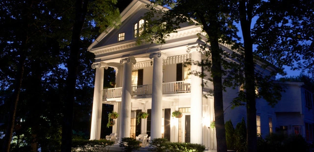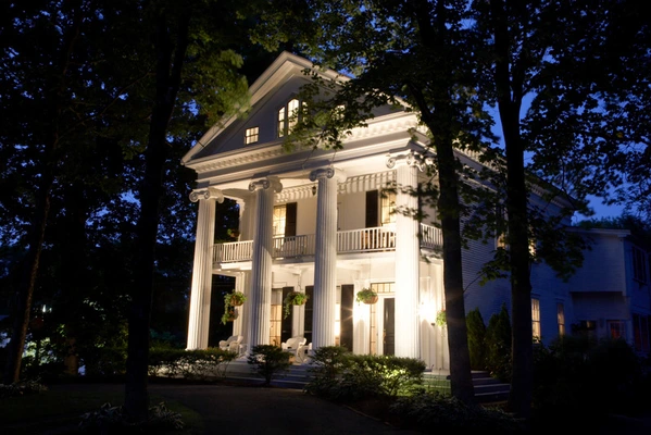 “A stately Greek Revival building with imposing columns, the inn has one of the most dramatic facades of any house on the Cape; it sits near the Botanical Trails and has its own fine gardens.”