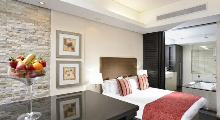 “Breakfast is part of the deal at these up-market self-catering apartments, ranging from studios to two-bedroom units in a slick redevelopment project.”
