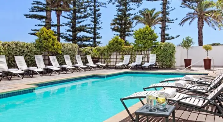 “A renowned, privately owned four-star hotel on Sea Point’s coastal boulevard. Tailor-made tours to the Winelands or to Cape Point can be arranged through consultation with the management.”