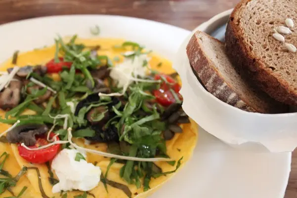 “This offbeat eaterie plays a soothing soundtrack of bird calls, serves its meals in wonky, home-made crockery and sports ceramic swan light fittings.”