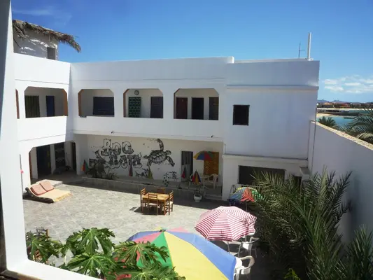 “La Boaventura has simply furnished dorms and guestrooms – all with private bathrooms and some with sea views – set around a vine-fringed courtyard.”