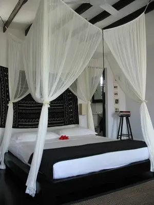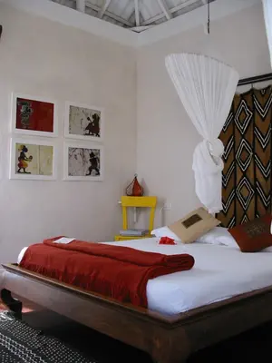 “The gorgeous Migrante has four rooms set around a courtyard of mustard yellow and bougainvillea pink, with a giant palm tree.”