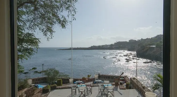 “On a breezy bluff pointing out to sea is this glossy Praia address.”
