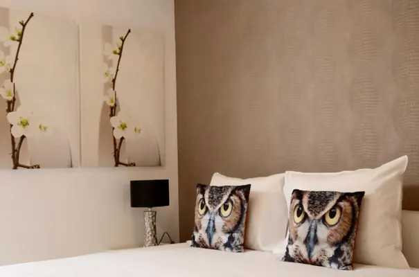 “This boutique hotel has bright, attractively set rooms with eye-catching wallpaper, suede furniture, shag carpets and a chic, ultra-modern vibe.”