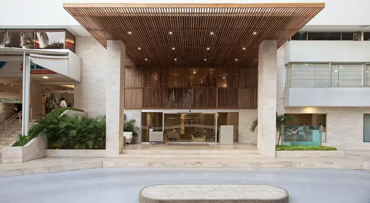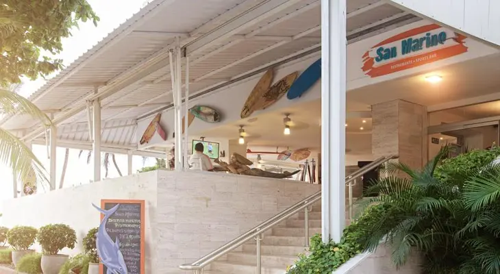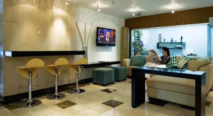 “This high-class hotel boasts a revolving rooftop bar and a 22nd-floor swimming pool overlooking the sea.”