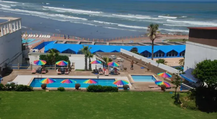 "A modern hotel overlooking the beach, with a good pool, safe parking and a restaurant serving burgers, club sandwiches and kebabs."