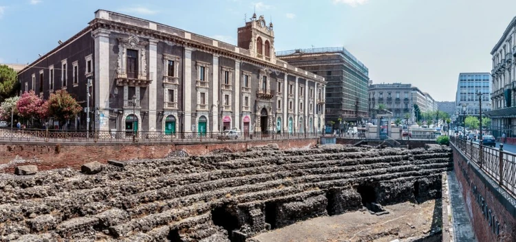 One of Catania’s busiest public squares, Piazza Stesicoro straddles the main shopping strip of Via Etnea. — Afar Magazine