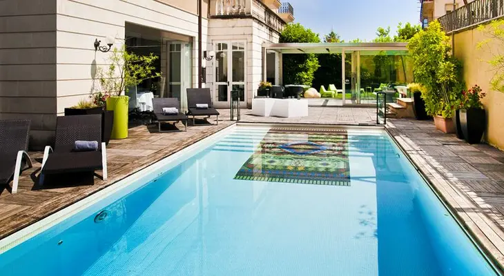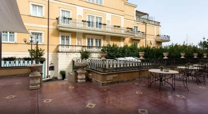 “This 19th-century villa is full of contemporary design. Rooms are furnished with subtle modern decor, and the roof terrace has a view of the city. The hotel has non-smoking rooms.”