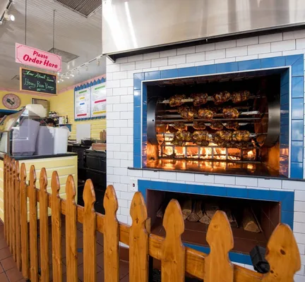 When you step up to the counter to place your order at Chicken Chicken, a huge rotisserie of roasting chickens turns invitingly in front of you releasing mouth-watering aromas. — Frommer's